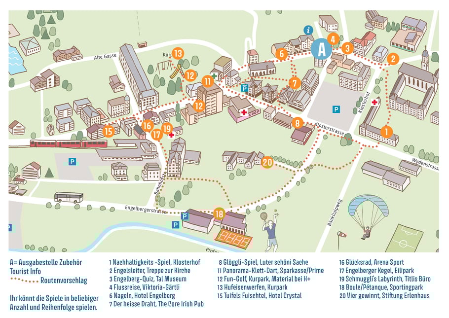 Der Spielparcours besteht dieses Jahr aus 16 verschiedenen Posten, die durch Engelbergs Dorfkern führen.